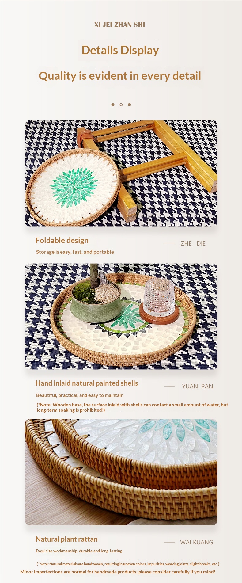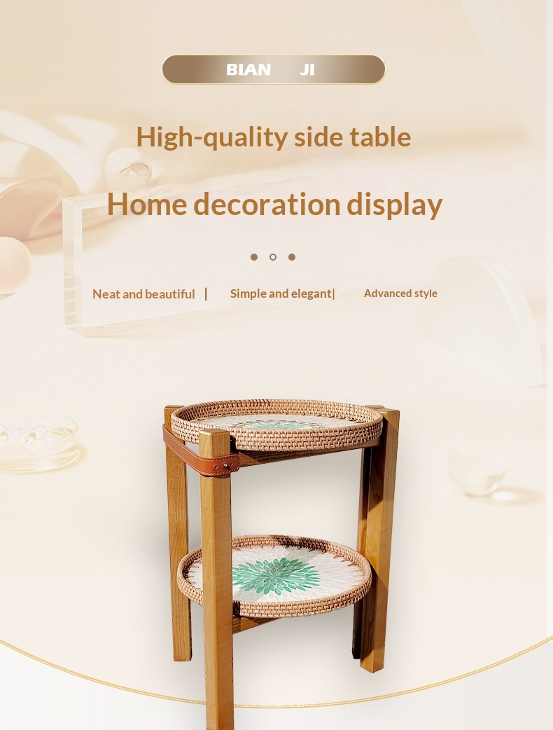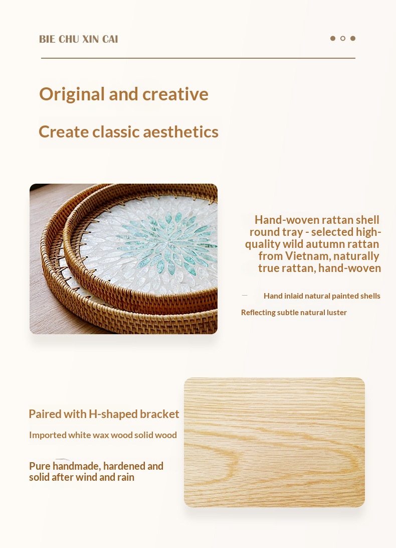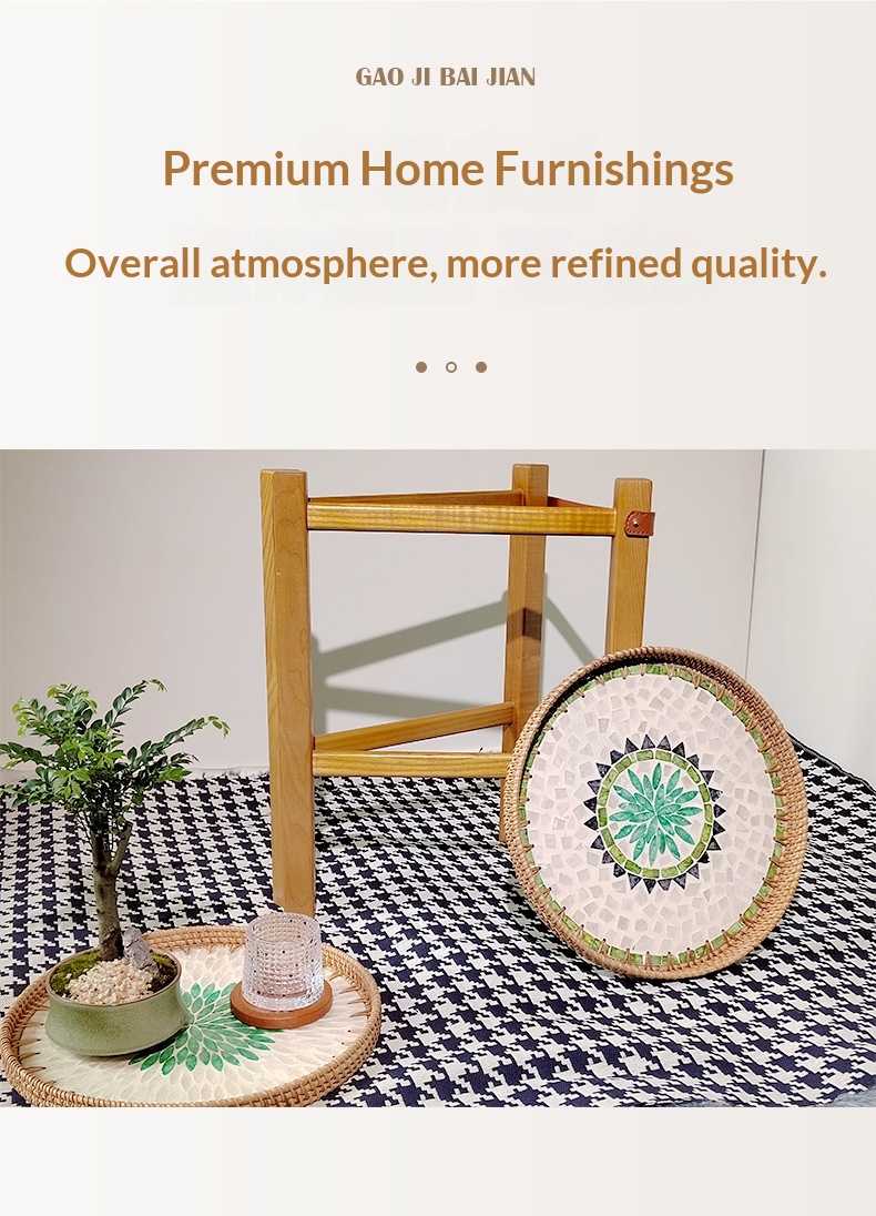 Style: Solid imported ash wood H-frame, with 1 hand-woven mother-of-pearl rattan tray and 2 hand-woven mother-of-pearl rattan trays.